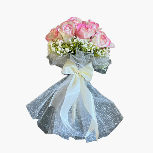 دسته گل عروس مصنوعی رز سفید و صورتی گلسرای نداف