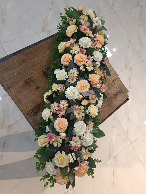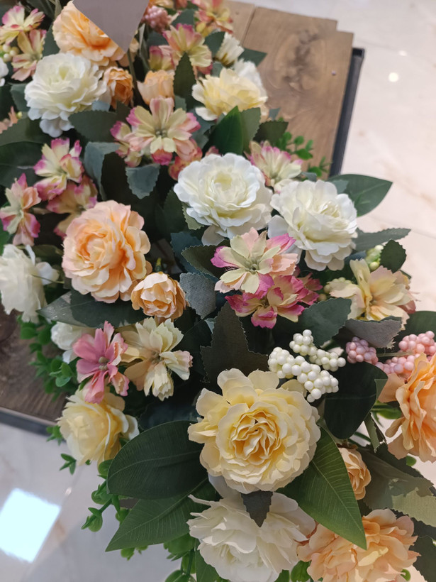 پنل گل مصنوعی آماده رز نارنجی و سفید قابل استفاده روی ماشین عروس/خنچه/ بکگراند سالن زیبایی/دکور فروشگاه/استند تبلیغاتی