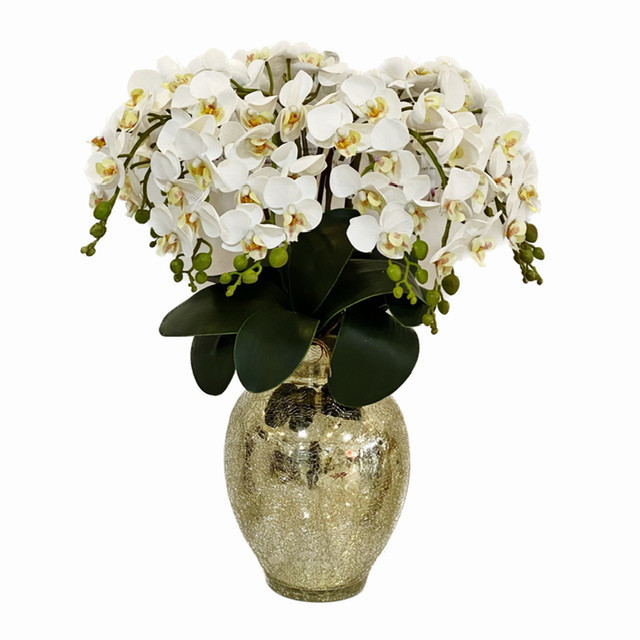 گلدان به همراه گل مصنوعی مدل ارکیده ریز سفید گلسرای نداف