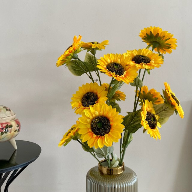 گلدان به همراه گل مصنوعی مدل آفتاب گردان بزرگ گلسرای نداف