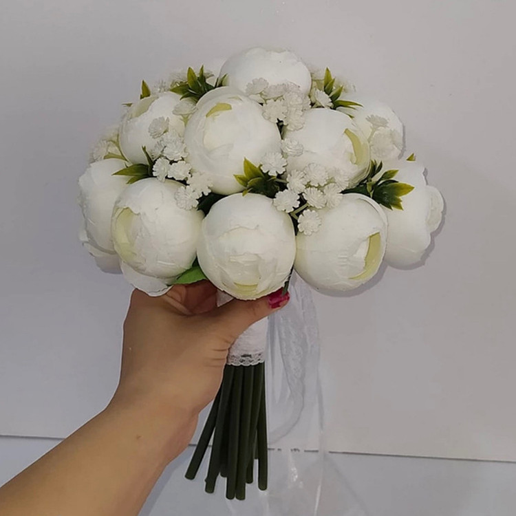 دسته گل مصنوعی عروس ترکیب گل پیونی غنچه و شکوفه عروس کیفیت گلهای مصنوعی عالی و وارداتی میباشد. دسته دانتل کار شده است