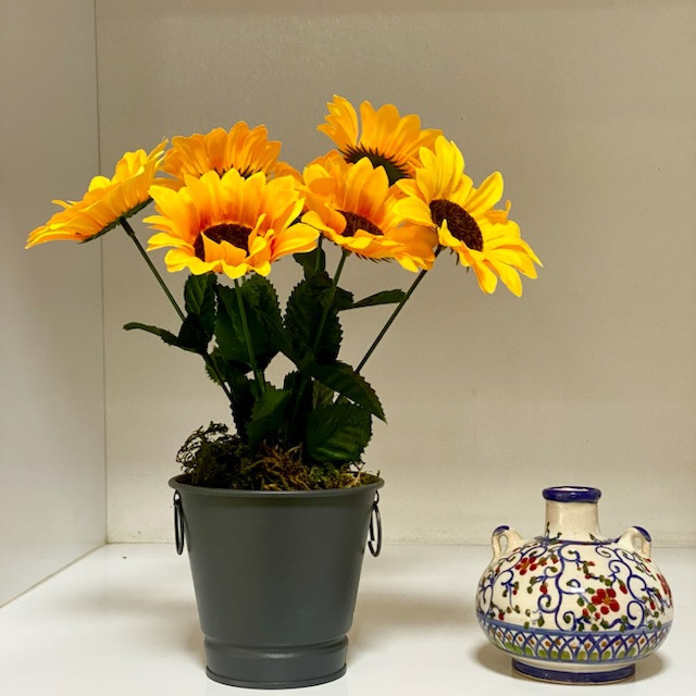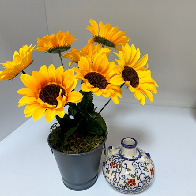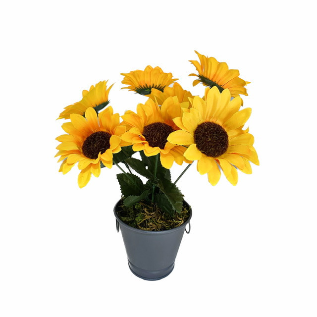 گلدان به همراه گل مصنوعی مدل آفتاب گردان 7گل گلسرای نداف