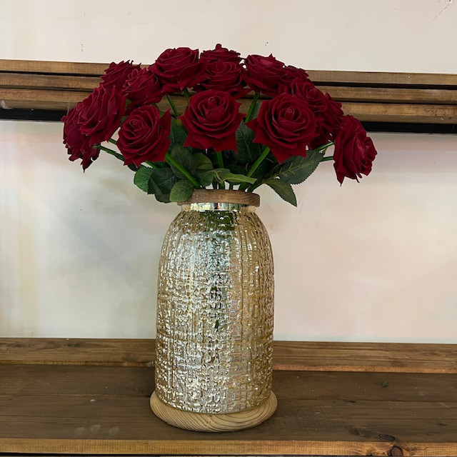 گلدان به همراه گل مصنوعی مدل رز مخملی (20 شاخه ) گلسرای نداف