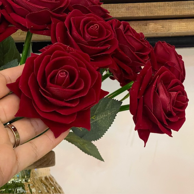 گل مصنوعی مدل رز مخملی 30cm بسته 2 عددی گلسرای نداف