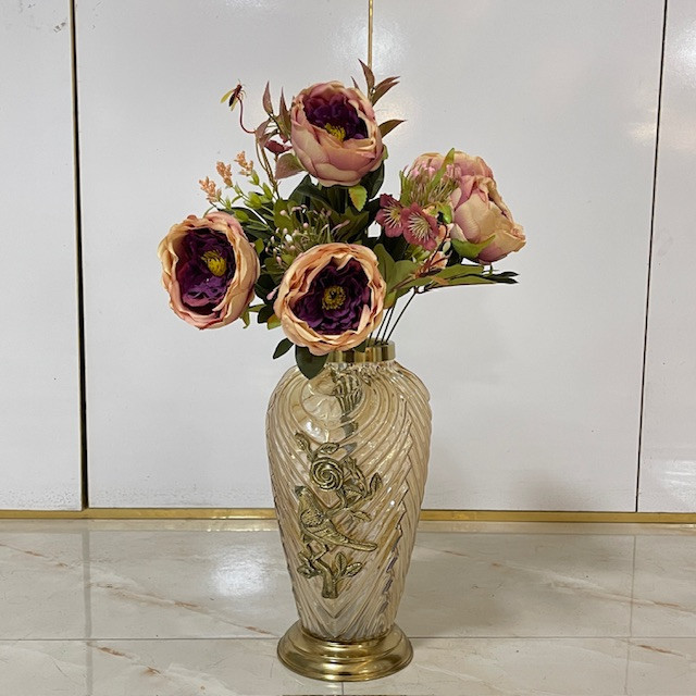 گلدان به همراه گل مصنوعی مدل قاصدک (یک بوته) گلسرای نداف