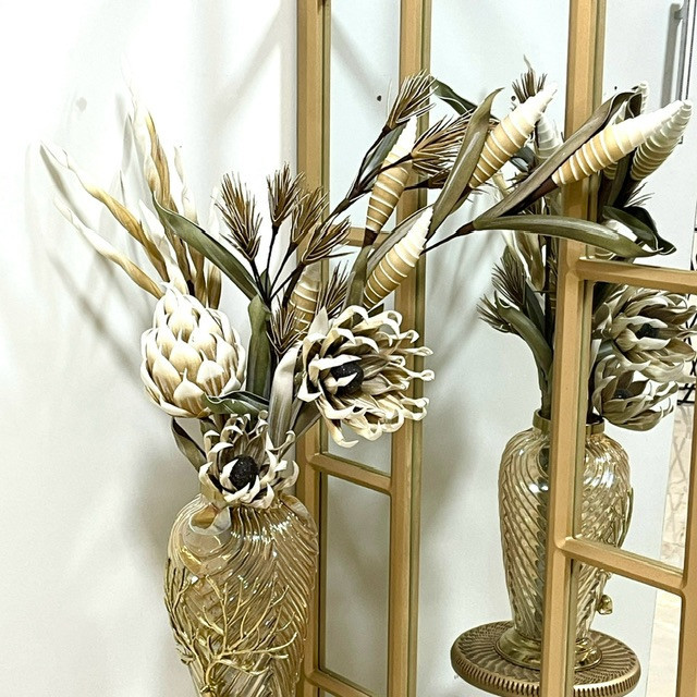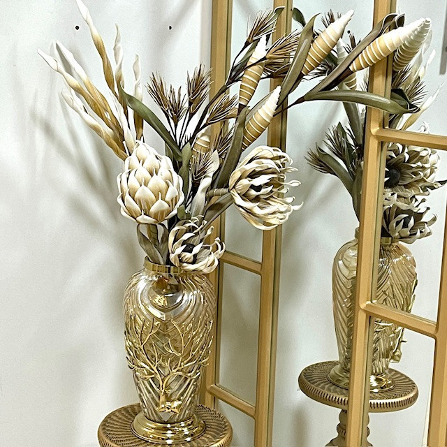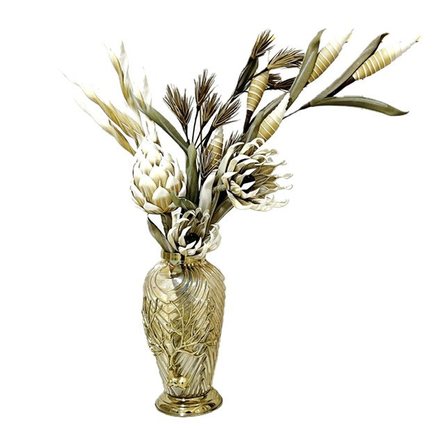گلدان به همراه گل مصنوعی مدل متالوکس R104 گلسرای نداف
