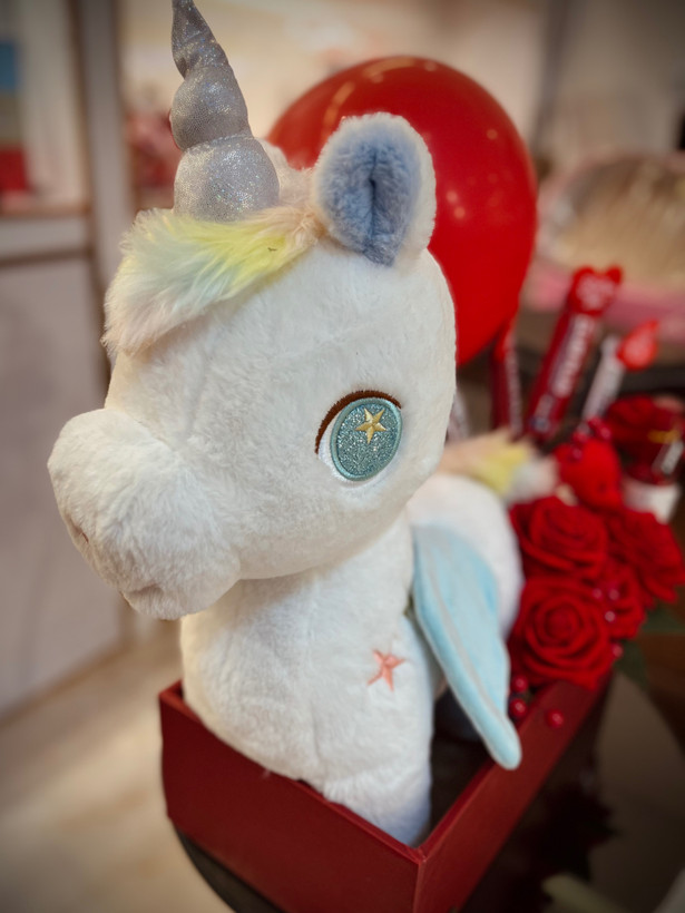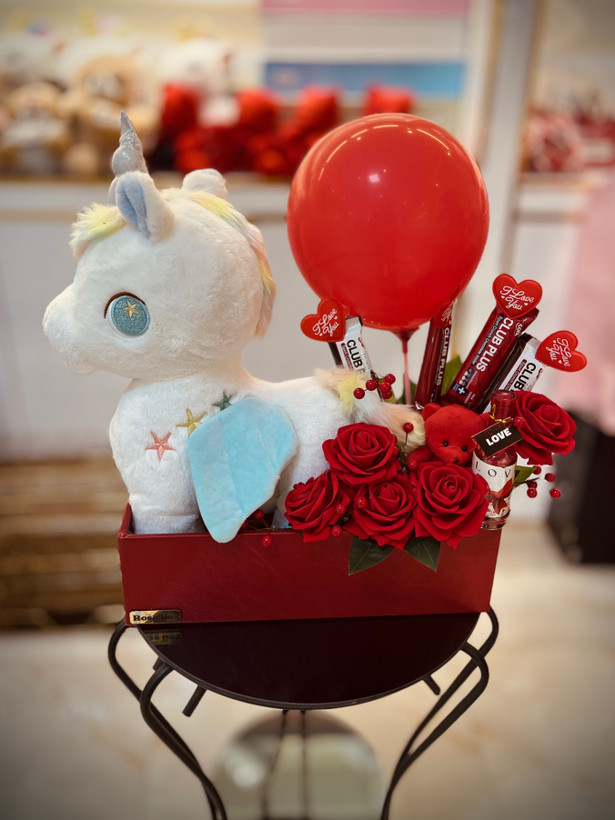باکس هدیه ولنتاین همراه اسب شاخ دارگلسرای نداف