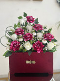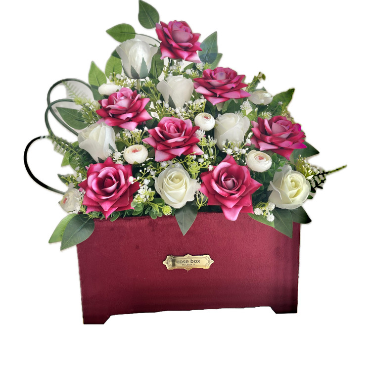 باکس گل مصنوعی هدیه مدل رز قرمز و سفید گلسرای نداف