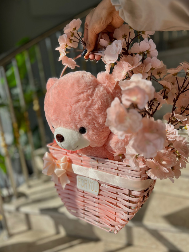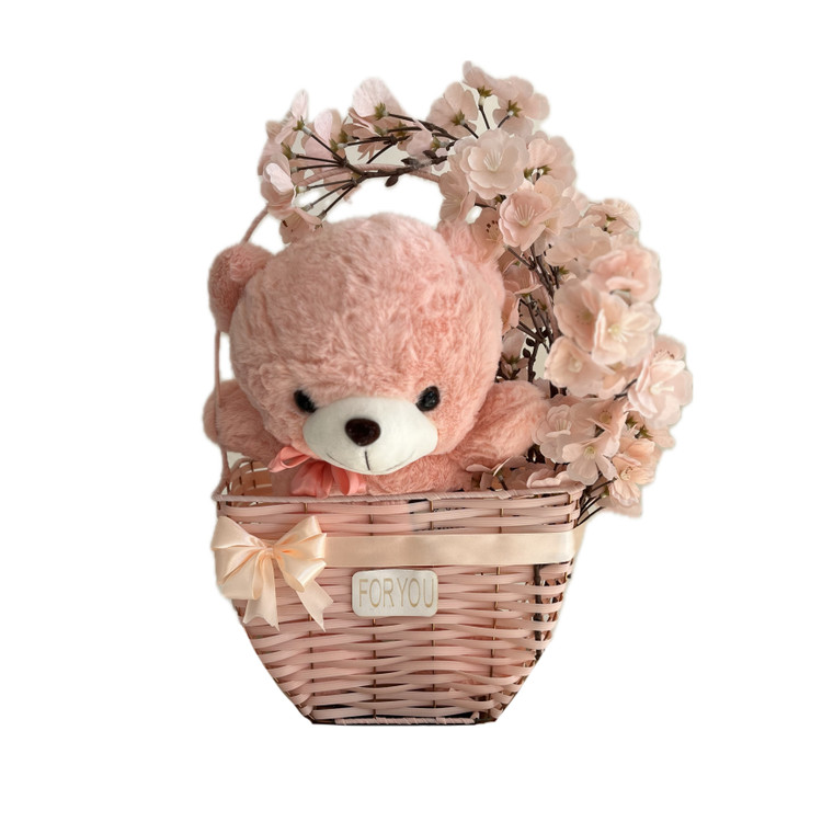 بالکس گل مصنوعی مدل خرس صورتی و بوته شکوفه گلسرای نداف