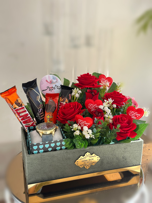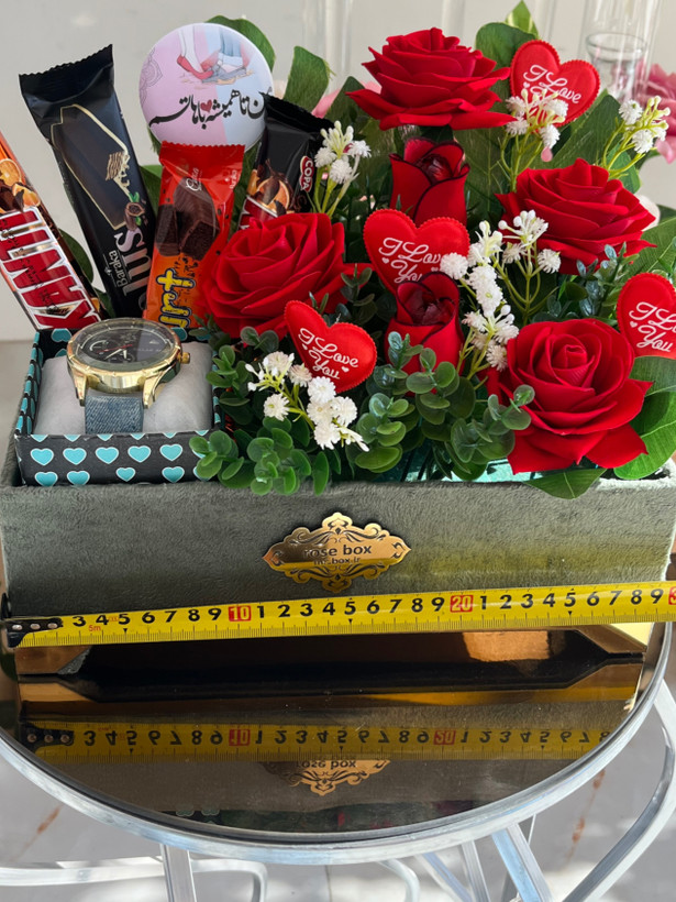 باکس گل مصنوعی هدیه همراه ساعت گلسرای نداف