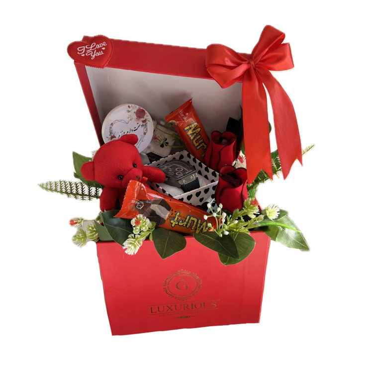 باکس گل مصنوعی همراه با عروسک ولنتاین گلسرای نداف
