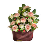 باکس گل مصنوعی بنفش مدل رز سفید صورتی گلسرای نداف