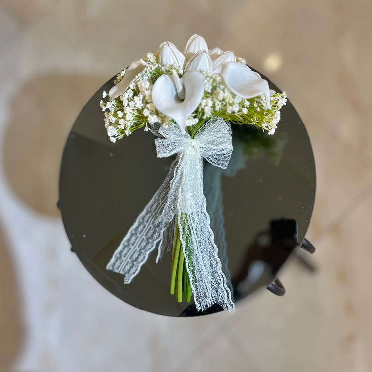 دسته گل عروس مصنوعی لاله و شیپوری گلسرای نداف(استعلام قیمت و موجودی تماس بگیرید)