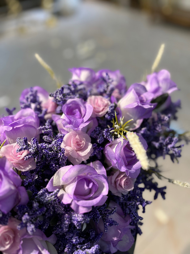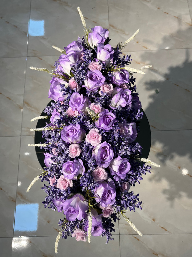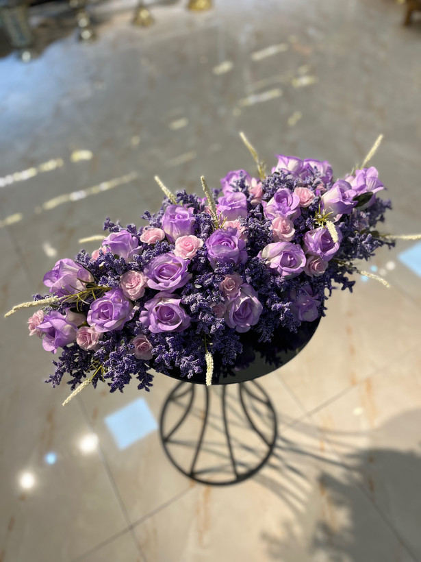 پنل گل مصنوعی آماده رنگ بنفش قابل استفاده روی ماشین عروس/خنچه/ بکگراند سالن زیبایی/دکور فروشگاه/استند تبلیغاتی