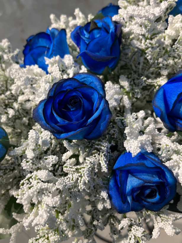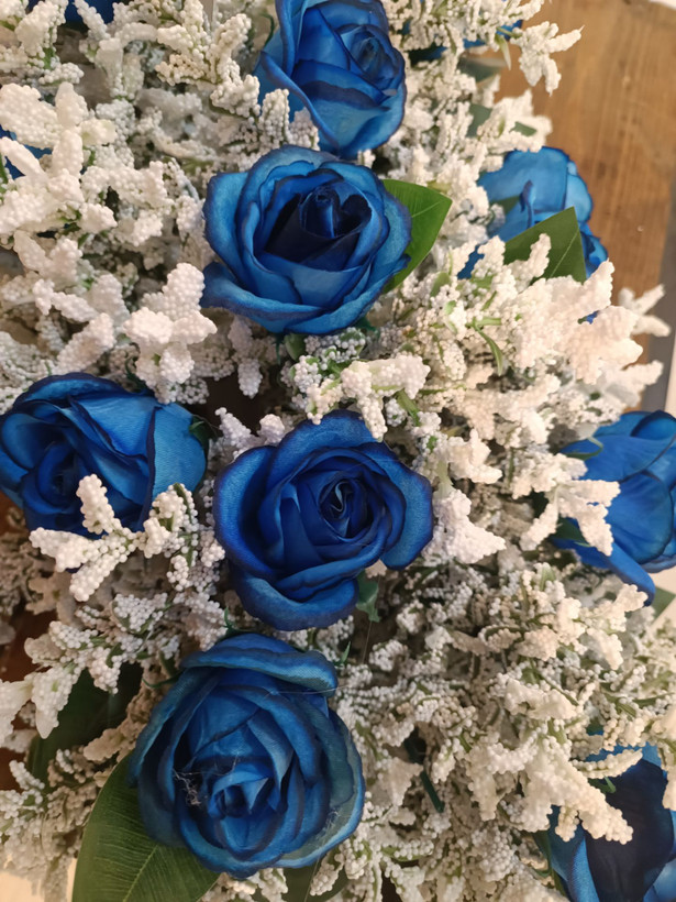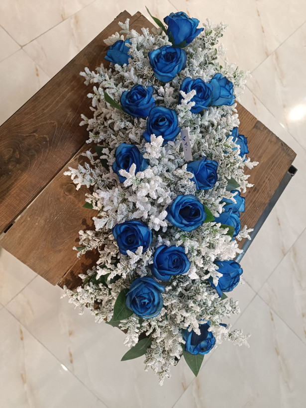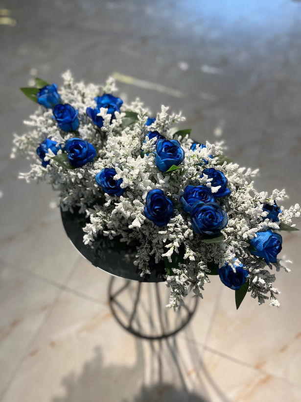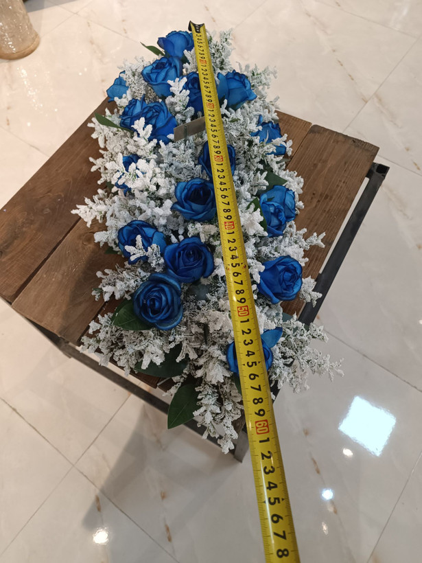پنل گل مصنوعی آماده رنگ آبی قابل استفاده روی ماشین عروس/خنچه/ بکگراند سالن زیبایی/دکور فروشگاه/استند تبلیغاتی
